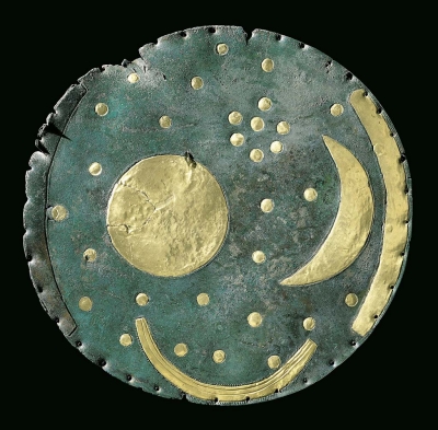 Bronzový disk o průměru dvaatřicet centimetrů vykopali před sedmi lety amatér?tí hledači pokladů poblí? vesnice Nebra nedaleko Lipska v Německu. Na kotouči s typickou modrozelenou patinou jsou ve zlatě zobrazeny Slunce, Měsíc