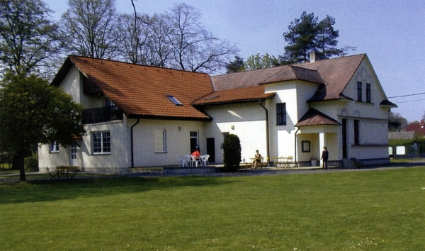 Sokolovna letecký snímek areálu TJ Sokol Rychvald z r. 1999