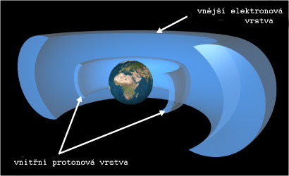 Van Allenovy pásy tvoří dvojice prstenců nabitých částic, je? obklopují zeměkouli. Jestli?e jsou přesyceny, vydávají se jejich nabité částečky na cestu k horním vrstvám atmosféry a vzájemným působením pak vytvářejí známou polární záři.