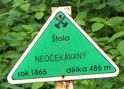 Tabulka označení ústí ?toly na hornické stezce (J. Grossmann, 1985) Provedení tabulky bylo v hornických barvách. Podklad v zelené a popis v černé barvě s uvedením roku zalo?ení ?toly a celkové délky.